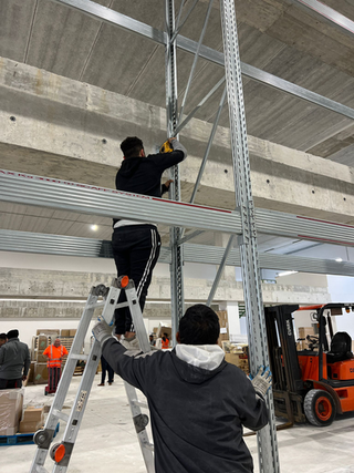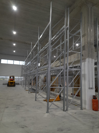 New warehouse shelving units were installed to optimise storage capacity and enhance organisational efficiency. The system is designed to support heavy loads and facilitate streamlined inventory management.