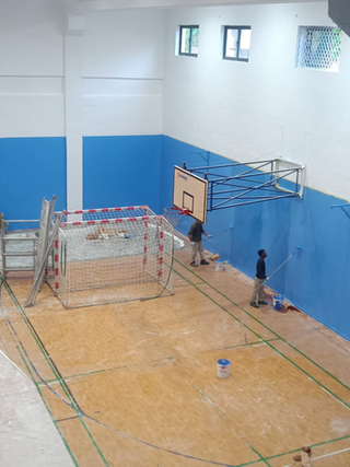 Renovation works continued at St. Martin’s College; mold was removed from the wall surrounding the tree, additional interior work progressed inside the chapel, and roof waterproofing began to prepare for plastering. Work also commenced on a new wall structure near the sports ground.